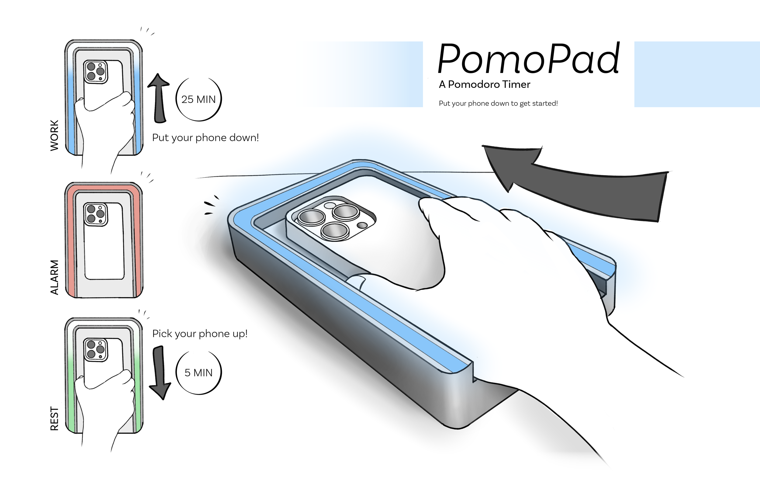 What if your pomodoro timer required you to put your phone down in order to use it? What would that interaction look like?